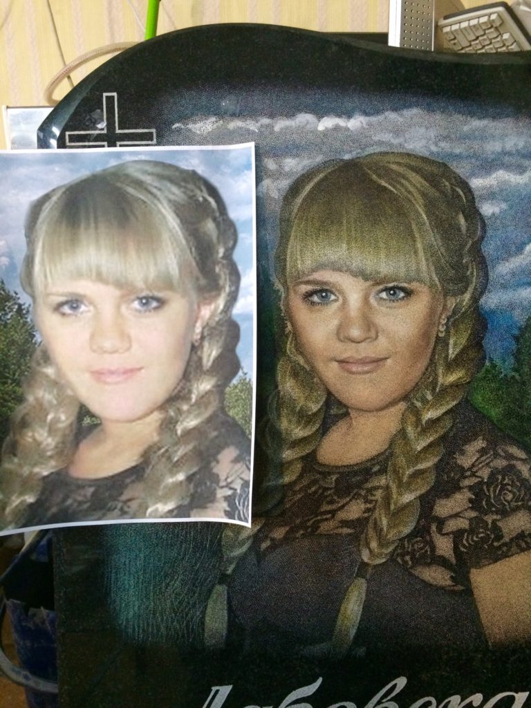 Наша мастерская гравирует и наносит портреты, даты и дополнительную графику в том числе и цветную уже много лет.